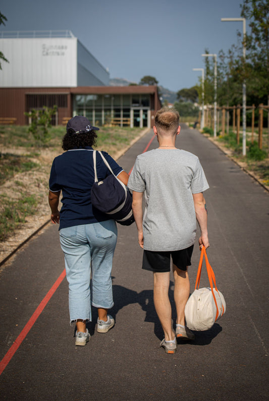 Sac polochon orange et blanc